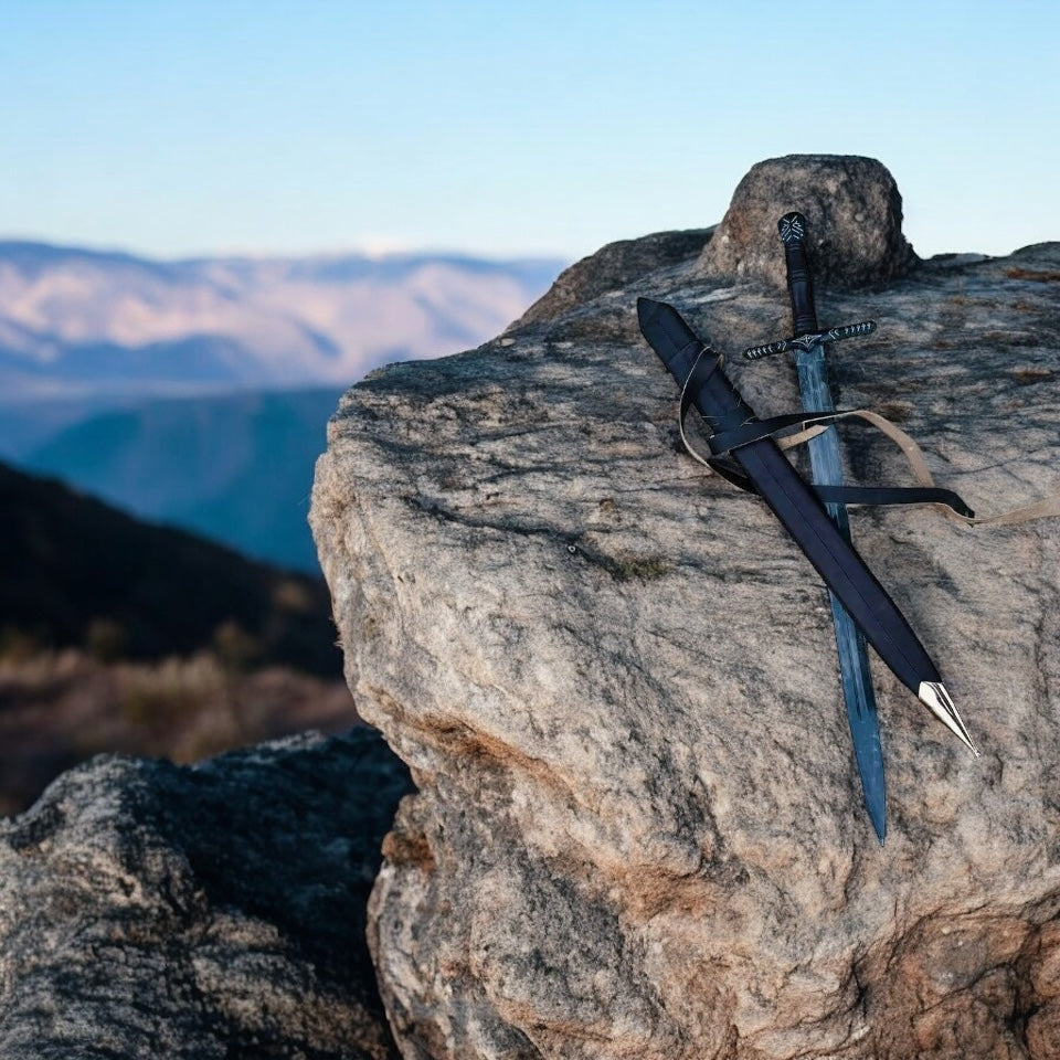 The intricate details of this sword speak volumes about the skill and care put into its creation. The blackened guard and pommel feature runic or symbolic engravings, evoking Nordic, Viking, or Elven inspiration—perfect for fantasy fans and historical weapon collectors alike. Whether displayed on your wall or used as part of your cosplay gear, it will command attention and admiration wherever it goes.